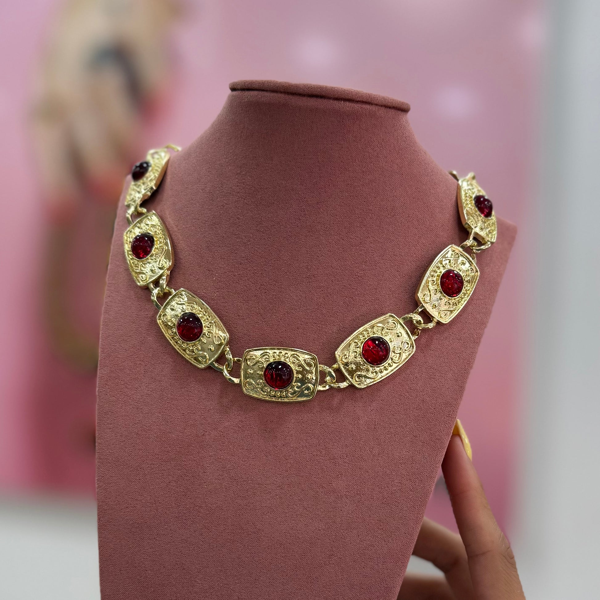 Collar dorado con piedra roja